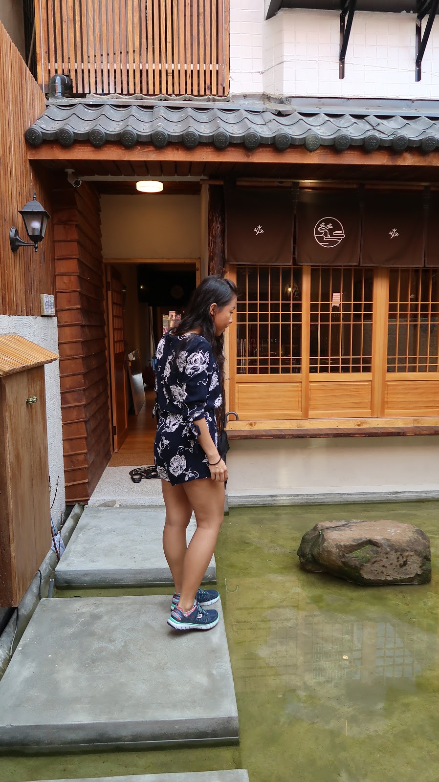 一進門就要經過一個小水池,踏在浮在水面的步道上,