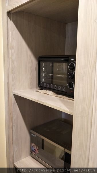 烤箱、微波爐、冰箱隱身在吧檯後方櫃子裡~