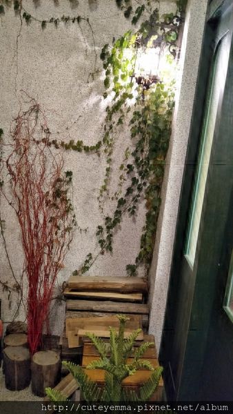 木板隔柵+植生牆的設計,有一種在原始自然的錯覺,
