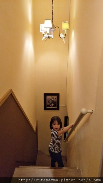 樓梯轉角上方出現這音室的吊燈這是前往北歐的梯間,