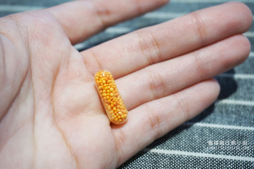 【紐萊特長效緩釋型維生素C膠囊】的外表非常可愛,我非常喜歡透明的膠囊可以看到裡面一個一個顆粒的感覺。維他命C一天只要吃一顆就可以了,需要搭配約300CC的水。