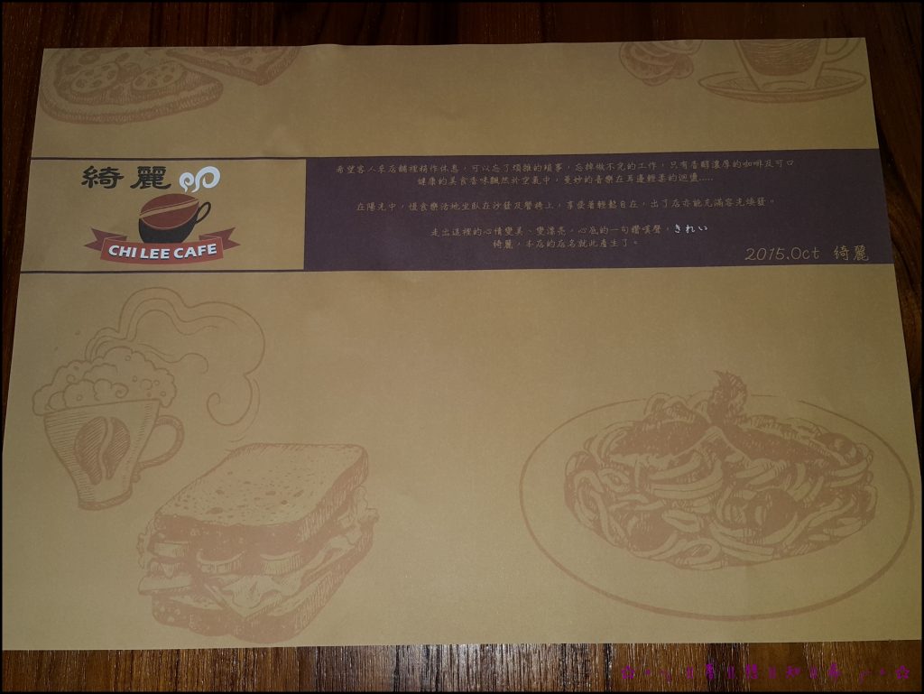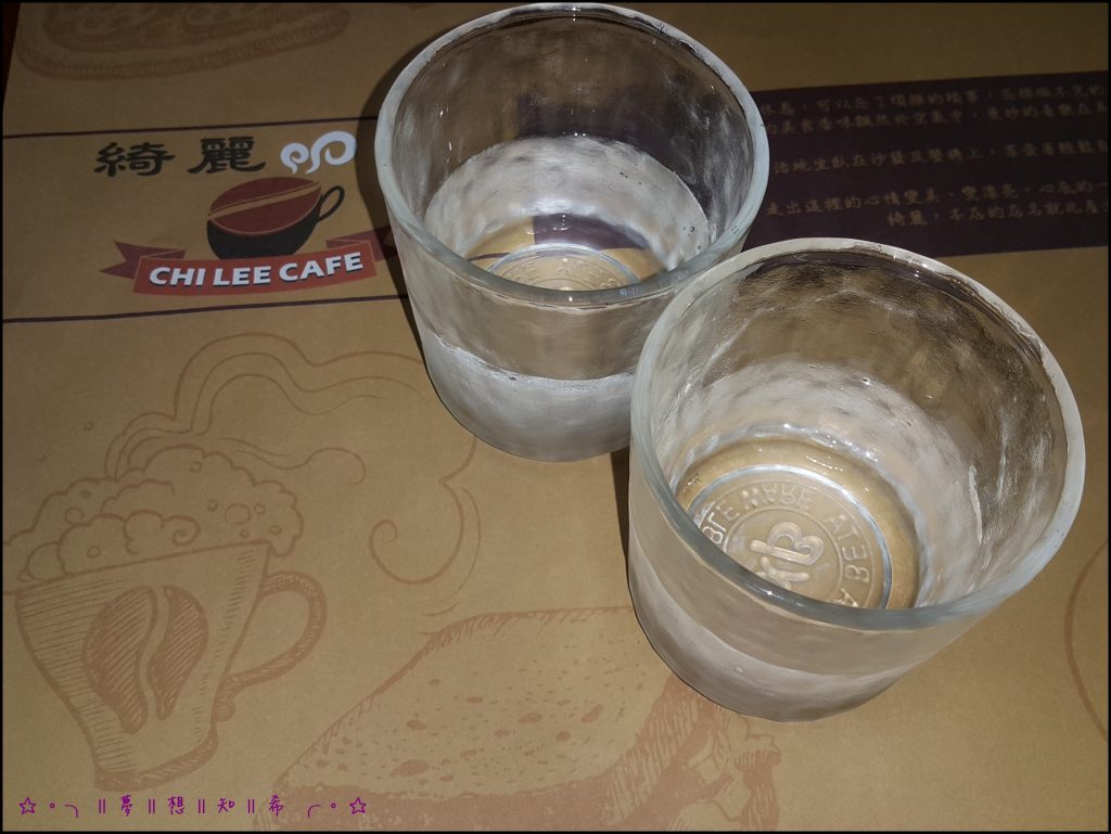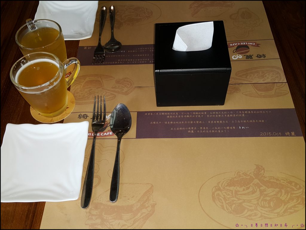 點餐前正妹服務員拿來了餐桌紙~以及兩杯白開水