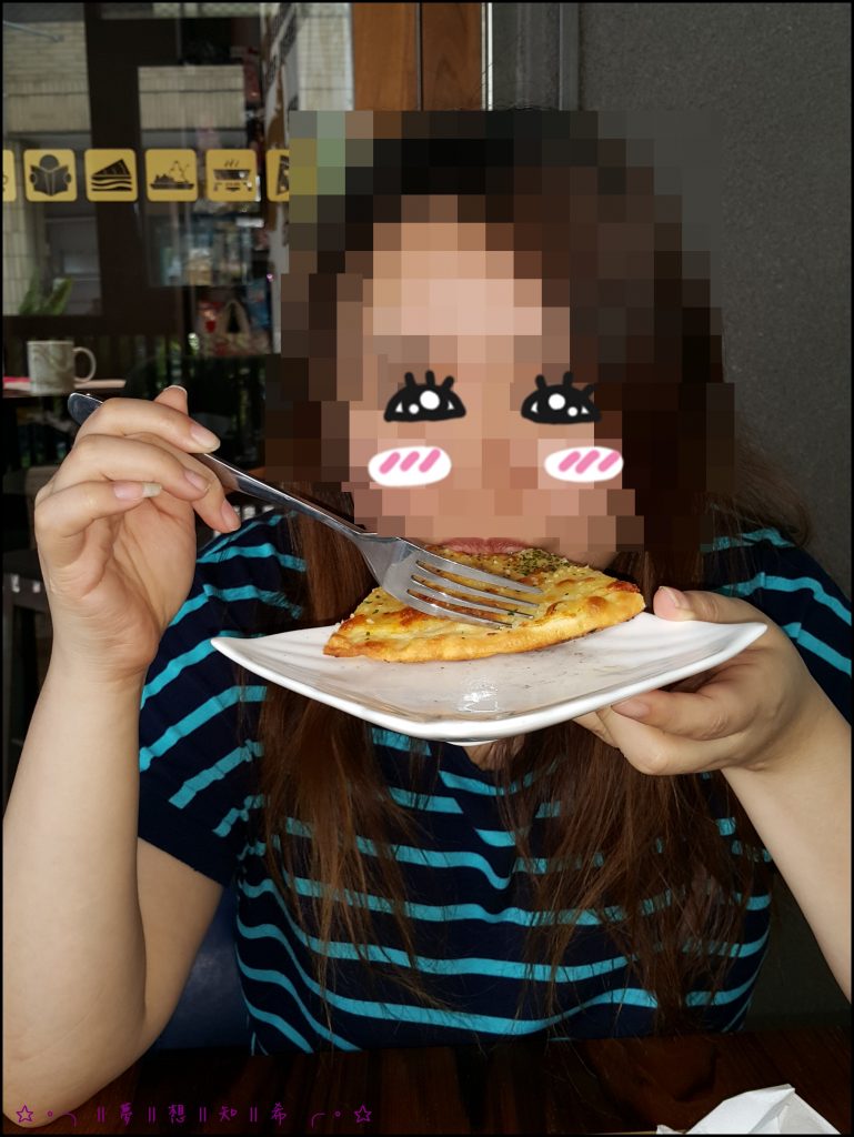 姊味吃義式起司披薩的畫面,
