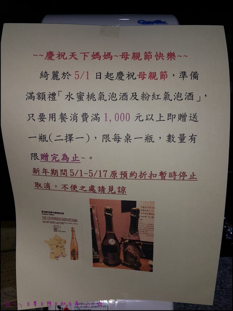 母親節還有滿額送氣泡酒活動,但是提醒大家數量有限贈完為止!