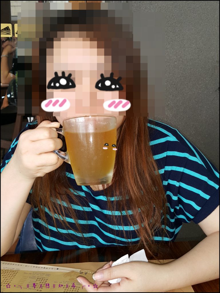 餐點我們選擇附的飲料是綠茶,有白泡沫是全糖的,沒有白泡味是無糖的。(附加飲料有紅茶、綠茶、咖啡、水果醋,或者您們可以用69升級飲料也行優!_