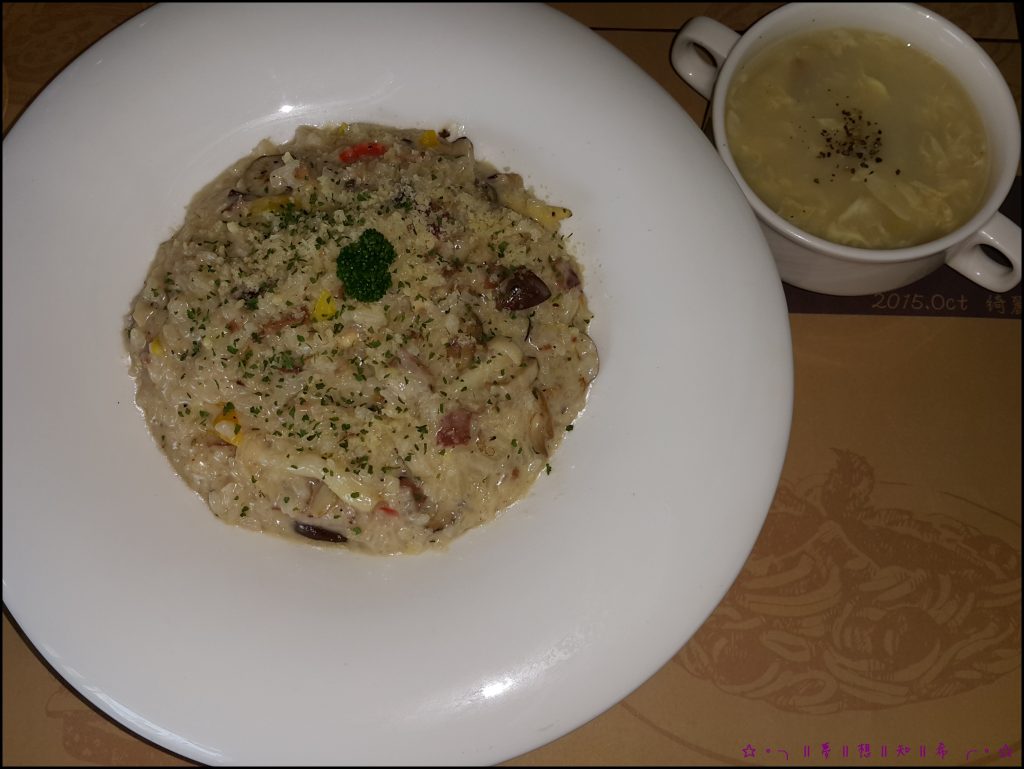 於是小編這桌這次點了兩種料理:野菇時蔬燉飯以及義式起司披薩這兩種。