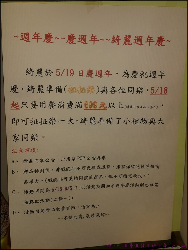 另外附上5月週年慶的活動,只要消費699以上,就可以參加囉!