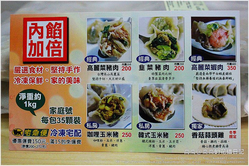 現在有經典口味~高麗菜豬肉、韭菜豬肉、高麗菜蝦肉,
