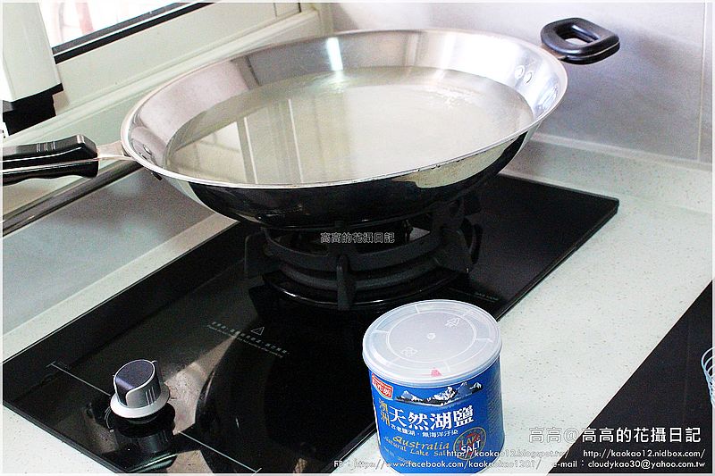 按照食譜步驟,首先準備好一鍋水及鹽巴,煮水餃最重要的就是要『水深且多』,