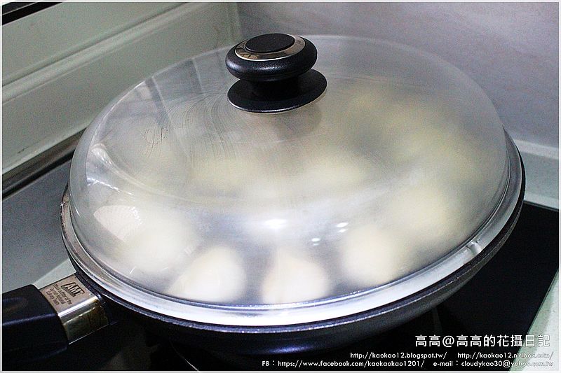 待水滾後可再悶煎一陣子讓水餃較容易熟透,接著開鍋蓋繼續慢煎至水份收乾。