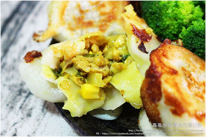 最後一種口味的咖哩玉米豬肉餃,咖哩香氣滿濃郁,帶點咖哩本身的微辣辣度,吃起來也是很爽口。