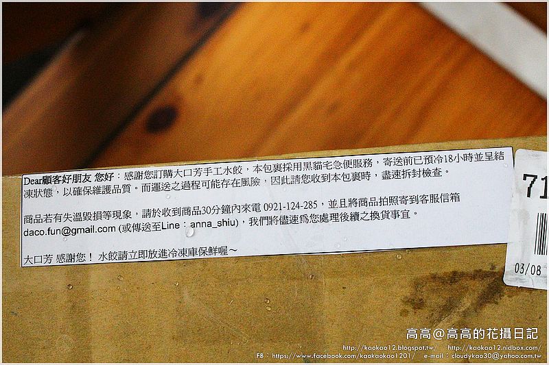 上圖是這天收到的大口芳手工水餃冷凍宅配包裹,