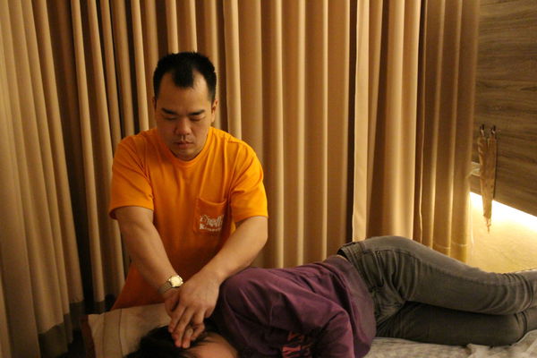 在全身肩頸按摩的過程中,師傅厲害的竟然按著出哪裡有堵塞的情況