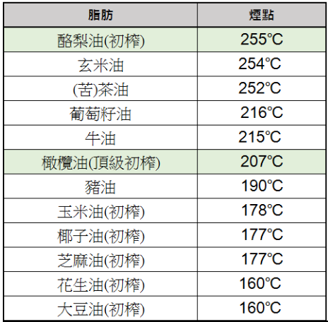 (以下為各項常見油品的發煙點資料,資訊取自於avogreen頂級酪梨油官網介紹)