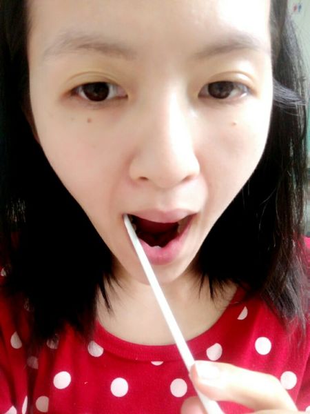 在口腔黏膜內壁用旋轉滾動的方式塗抹十次