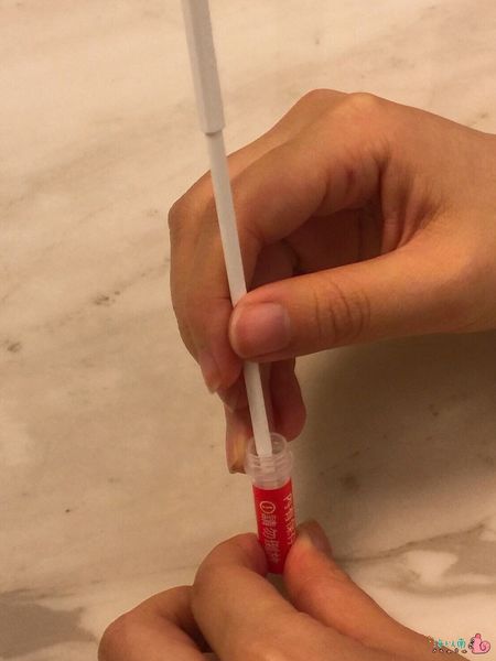 接著撕開採集棒的包裝,在採集的過程避免接觸到其他東西喔~