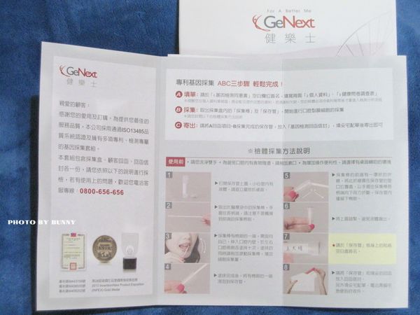 大約三天後收到專利基因的採集套組