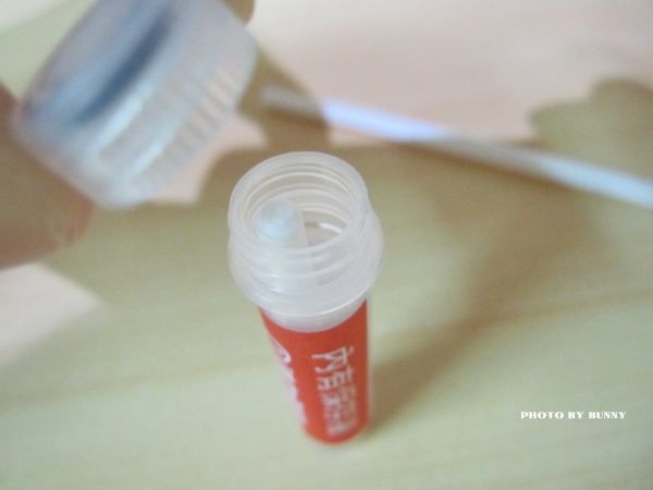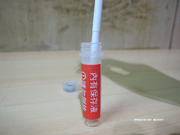塗抹完後 將有海綿的一端放進保存管內 再將前端折斷