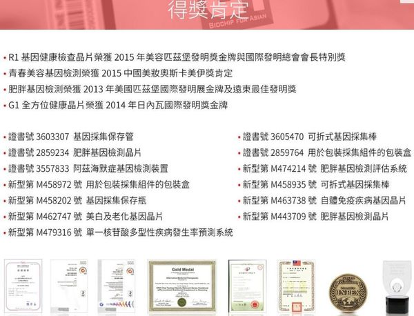 其實Discovery頻道《台灣智慧:服務全方位》有專訪過GeNext健樂士健康管理模式,而且GeNext健樂士已經取得許多核可證書,更得到許多獎項肯定,譬如他的G1基因晶片就曾獲得日內瓦國際發明金獎。