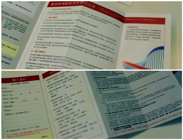 基因檢測服務受檢者同意書上會有本次服務內容、受檢者權利義務及隱私聲明等,背面則有個資告知事項。
