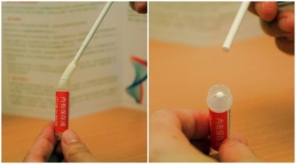 採集棒伸入口腔壁兩側,以棉花來回各刷動十次左右,滾動棉刷增加棉棒與口腔接觸的面積,確證有沾取足夠的口腔細胞,就完成取樣了。
