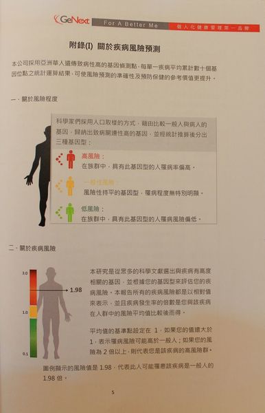 最後面會有基因檢測的簡介,以及所有檢測疾病的簡介及盛行率說明,都可以自行細看。