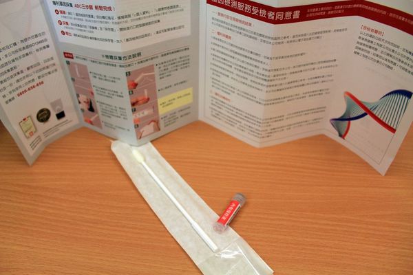 檢測包內有會有一張同意書問券、檢體取樣棒及保存管及回寄信封。