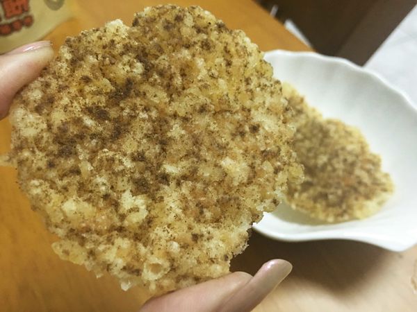 喜歡吃辣的朋友可以先試香辣椒鹽,鹹香刺激的口感會讓人停不下來,雖然比較重口味一些,但在咀嚼過程中會有點微微的米香,剛剛還在煩惱太大片吃不完怎麼辦,轉眼間就剩不多了...