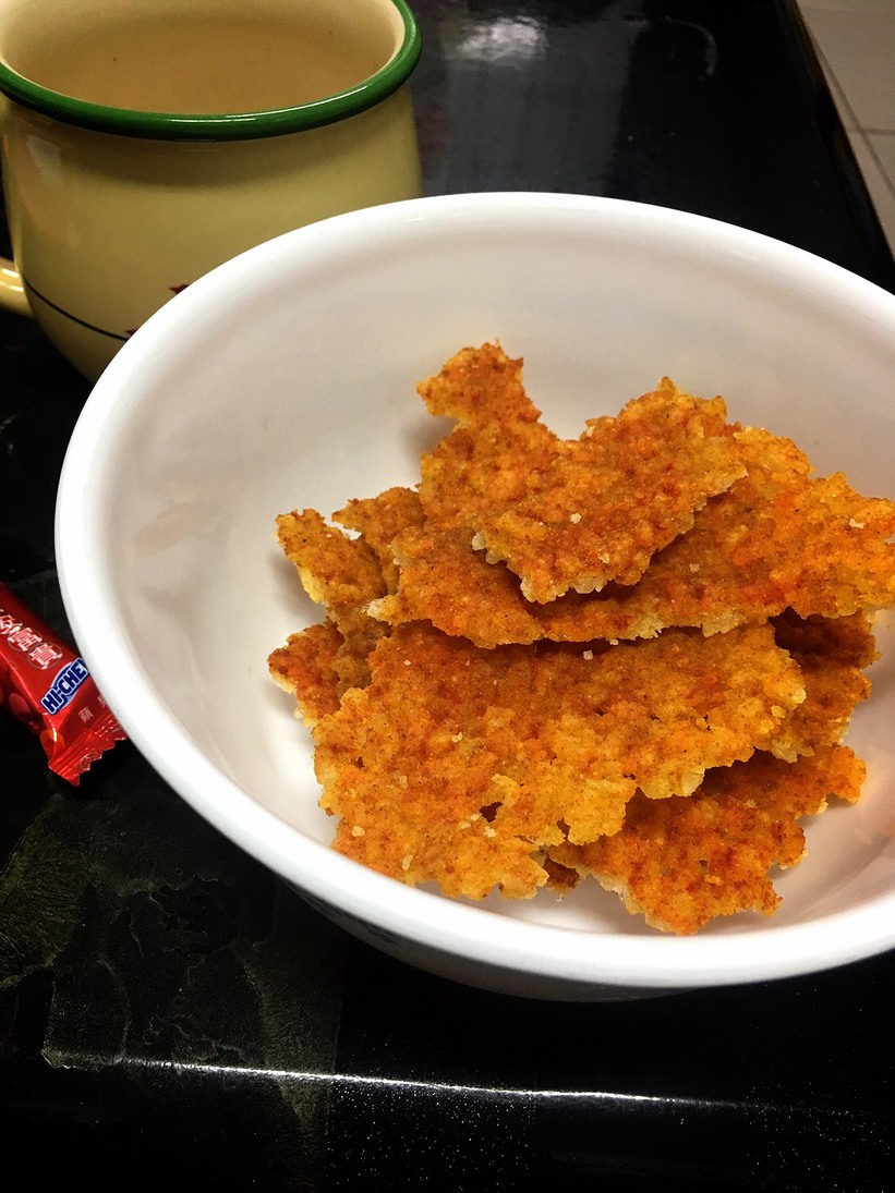 我是先把大片的鍋粑脆餅在袋子裡折碎成小片小片的