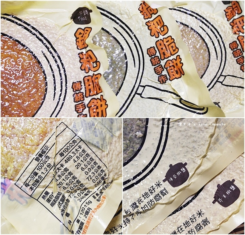 其中大包裝的鍋粑脆餅以真空包裝保存,