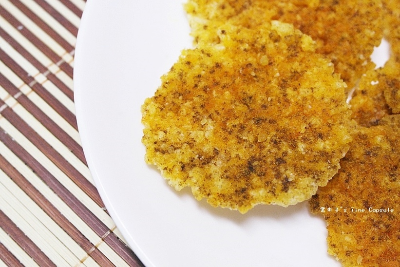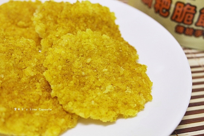 咖哩口味鍋粑脆餅黃澄澄的看起來漂亮,